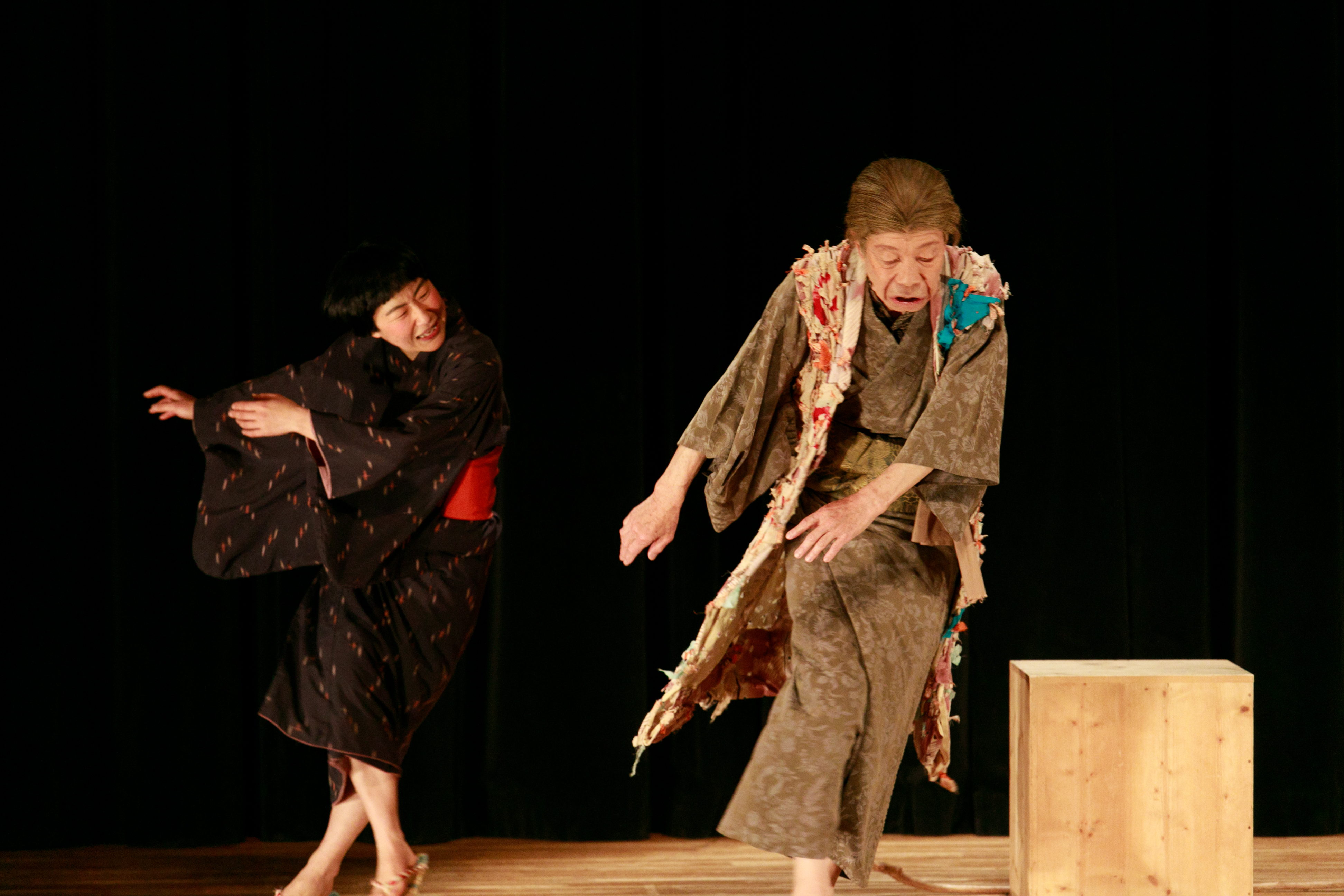 原智彦を中心に百姓の身体作法(股割り、すり足など)を大切に、音楽、映像、美術の絡み合うサイケデリック全身全霊芝居。